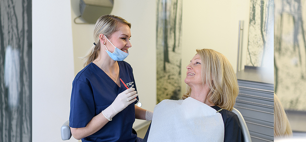 Ganz wichtig ist uns die umfassende Beratung zu Ihrer Mund- und Zahnhygiene. Die erste Maßnahme gegen Parodontitis sollte die Professionelle Zahnreinigung sein, die wir Ihnen auf jeden Fall und in regelmäßigen Abständen empfehlen.