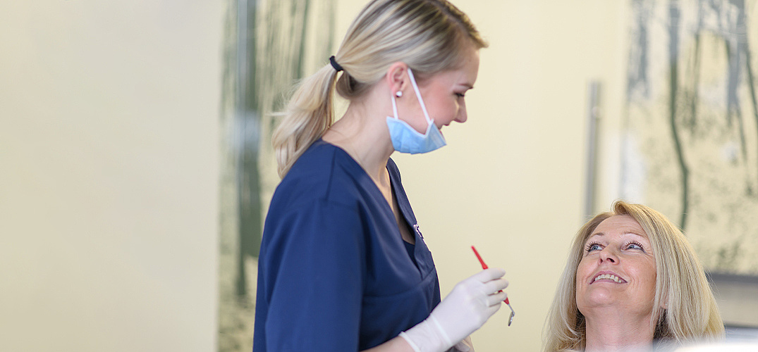 Die professionelle Zahnreinigung ist ein wichtiger Bestandteil der Prophylaxe – wir empfehlen sie zweimal jährlich. Hierbei entfernen wir gründlich Plaque und Zahnstein, die sich auch bei guter Mundhygiene bilden können. Außerdem glätten wir die Zahnoberflächen, um das Anhaften von Bakterien zu erschweren. Eine regelmäßige PZR trägt dazu bei, Zahnfleischerkrankungen und Karies vorzubeugen.